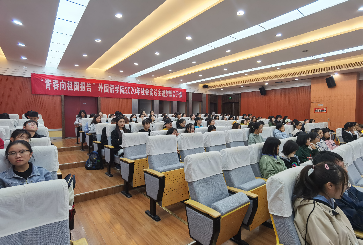 10月24日晚,外国语学院2020年“青春向祖国报告”社会实践主题梦想公开课在学院国际会议中心举办。外国语学院团委书记关天茹及全体2020级本科生参加了此次公开课。