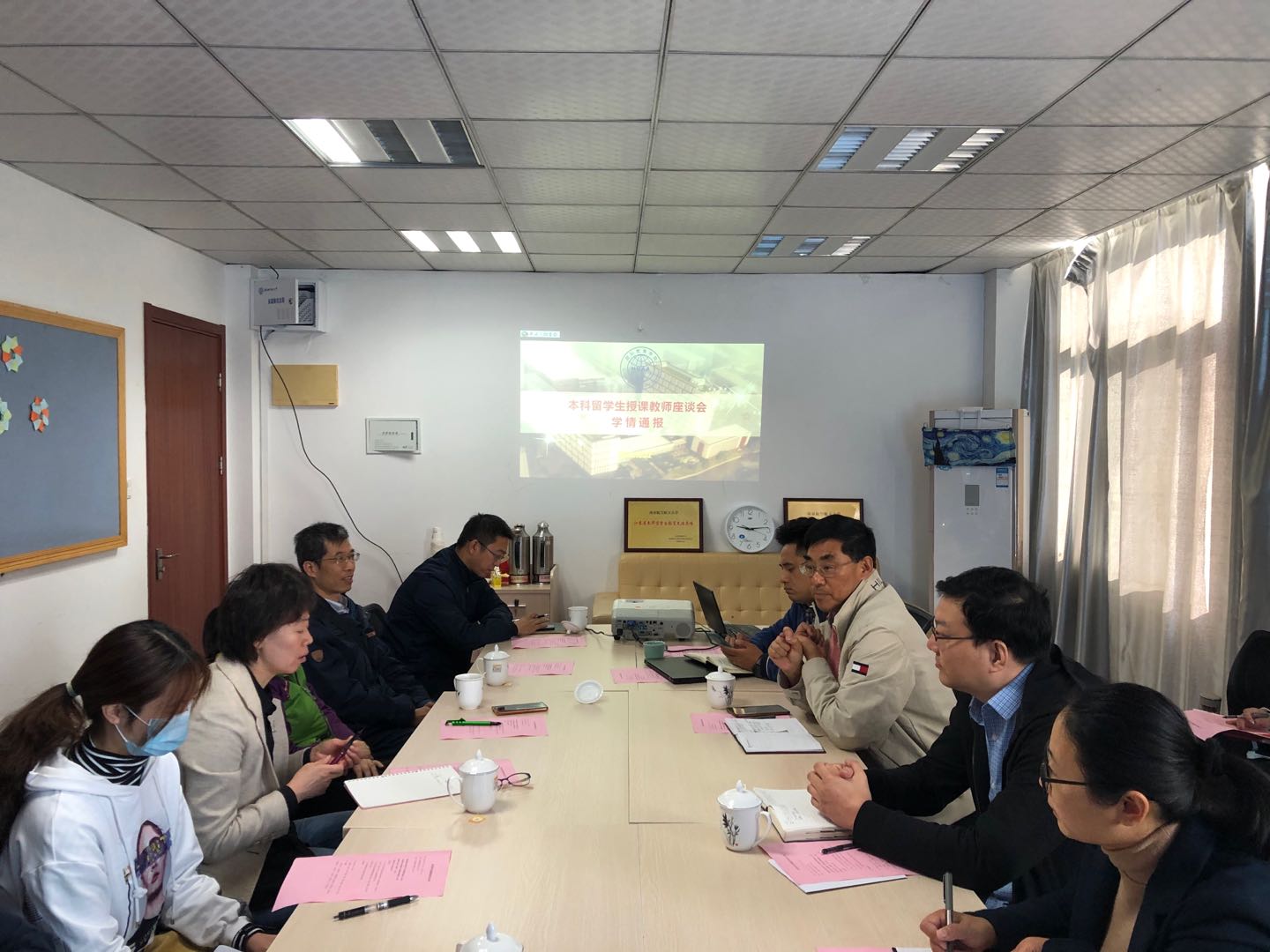 10月23日上午,国际教育学院在将军路校区学工楼250会议室召开了本科留学生任课教师座谈会。该座谈会旨在为留学生任课教师搭建交流平台,通过听取一线教学人员的意见和建议,查摆问题、分享经验,促进新形势下,特别是新冠肺炎疫情防控大背景下,留学生课程线上、线下教学工作的平稳、有序发展。国际教育学院院长金泉元,副院长李勇、陈峰,来自七个学院的九位留学生任课教师,以及留学生教学管理人员和辅导员参加了本次座谈。