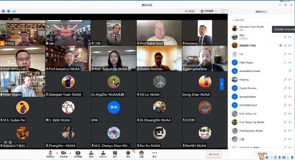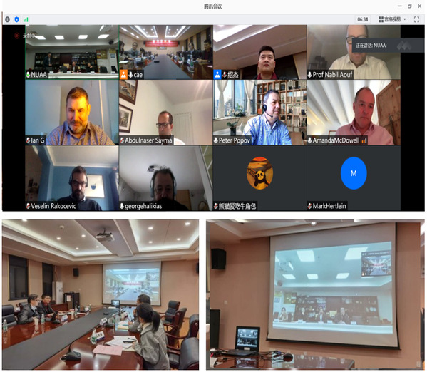 本次会议是一次采用线上和线下相结合的创新方式完成的国际学术交流活动,旨在为两校之间的专家学者就无人系统与控制领域提供一个高端学术交流平台,沟通和交流前沿理论、关键技术和相关的应用成果,进一步加强加深全球战略合作伙伴之间的实质性合作。英国伦敦城市大学ChristopherMcDowell(Assistant Vice President International)、 Peter Popov(Associate Dean International)、Mark Hertlein(Head of Global Engagement)、Nabil Aouf(Director of Systems,Autonomy and Control Centre and the London Space Institute)等;南京航空航天大学副校长姜斌,国际合作处处长张卓,国际合作处副处长沈敏,国际合作处项目科科长田立丰,自动化学院院长江驹,自动化学院副院长宋晓峰、自动化学院副院长陈谋,自动化学院自动控制系副主任张绍杰、自动化学院合作交流办公室主任孔燕及广大师生参加会议。