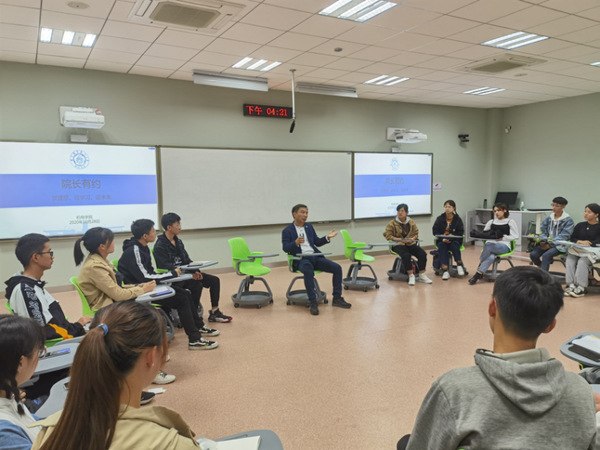 座谈期间,傅玉灿院长悉心解答同学们对于课程学习,未来前景和个人发展的疑惑。傅院长对新生提出了许多建议,如“要敢于选择自己从未尝试过的事情”、“学会利用学校提供的平台”、 “学会理解每一件事存在的意义”、……座谈期间,院长与新生氛围融洽,师生互动充分,对于新生踊跃提出的疑惑,傅院长一一解答,以诙谐幽默的语句化解新生心中的种种疑惑,座谈中金句频出“每天的成就感来自于自己的判断”、“一个人强大的自信来自于每天的小小成就感的一点点积累”、“拒绝不可怕,在校园被拒远比在工作时好得多”,师生距离大大拉近。