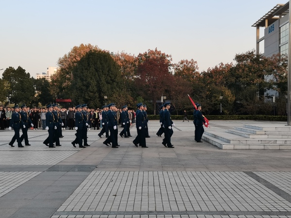 2020年11月9日清晨,电子信息工程学院2020级新生相聚在校国旗广场举行第一次升旗仪式。