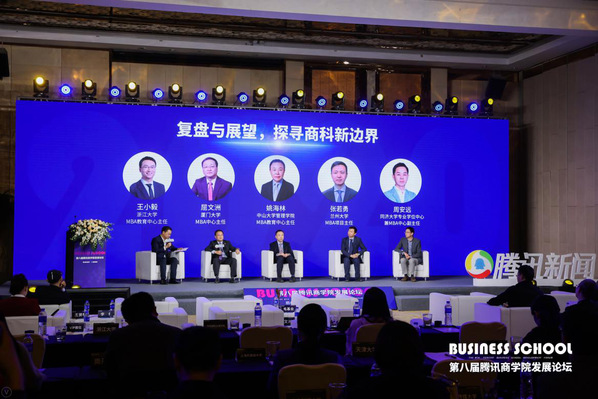 由腾讯新闻主办的2020第八届腾讯商学院发展论坛于11月12日在北京成功举办,国内众多知名商院院长、主任,权威机构负责人以及资深财经媒体人齐聚一堂,以“后疫情时代 商科教育的数字化转型”为主题,共同探讨中国经济以及中国商学院在新时代下的创新发展。经管院副院长王子龙、MBA中心执行主任杜刚、MBA中心招生主任徐倩应邀出席论坛。