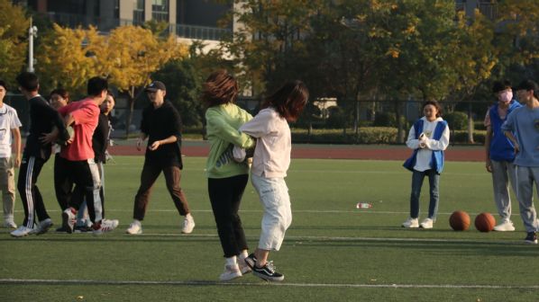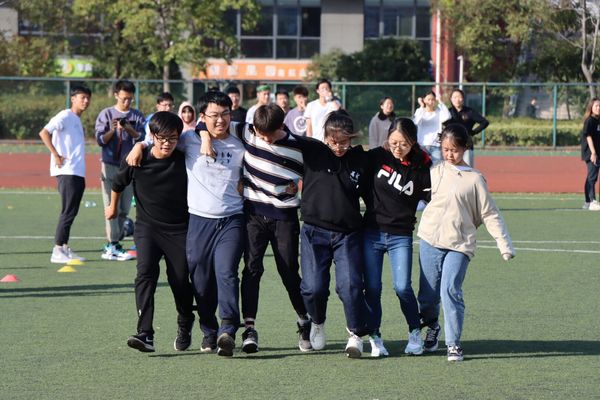 随着两位辅导员打响发令枪,本次趣味运动会正式开始。活动集趣味性、协作性和竞争性于一体,设立六人七足、十人八字跳长绳、背夹球接力三个项目。在六人七足中,各班同学们团结一致,口号响亮、步伐整齐划一,即使摔倒也不气馁,依旧勇往直前,体现了班级内部的凝聚力。