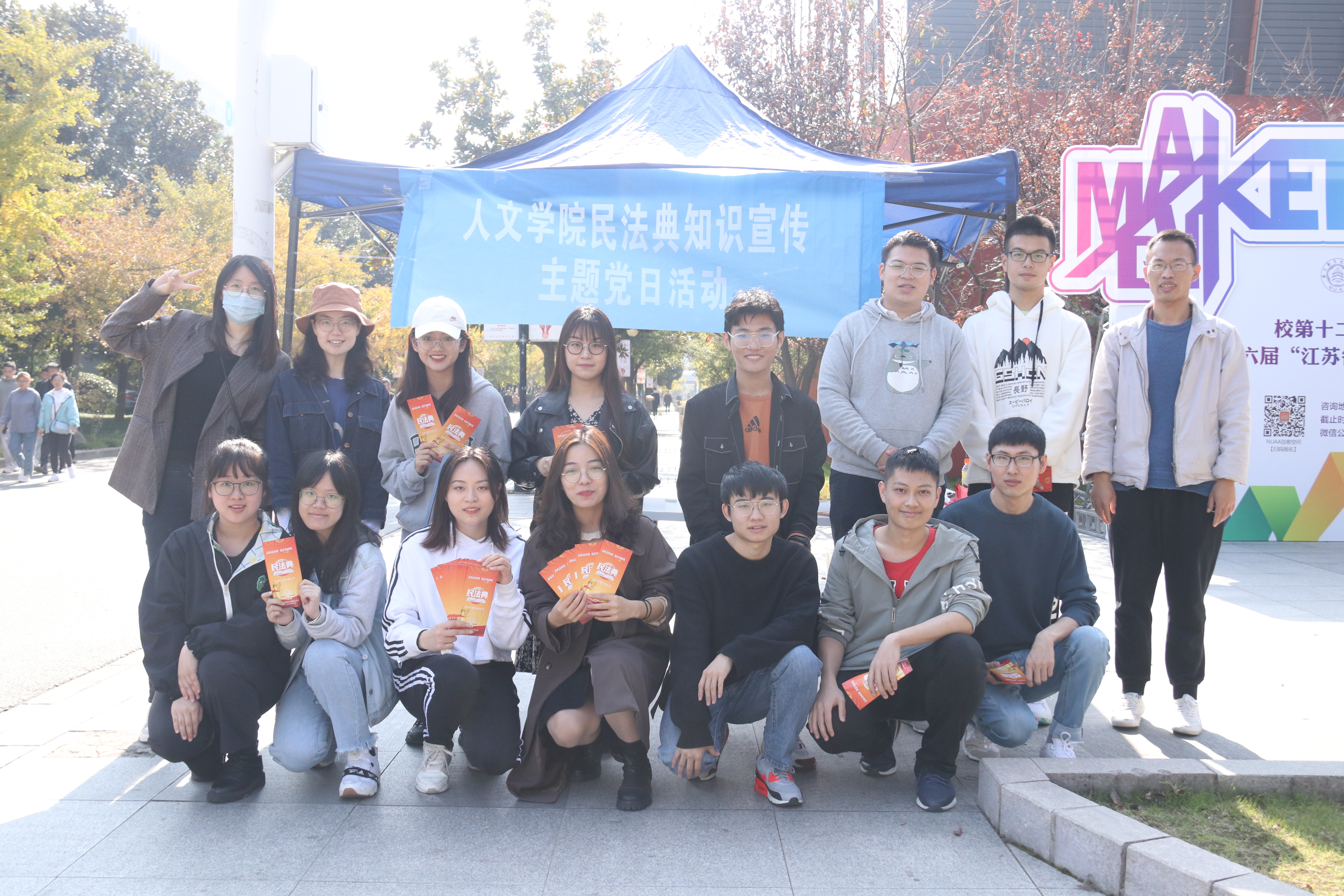 与此同时,为了加强南航学子对于民法典的了解,提高维权意识,树立法制观念,人文院学生党总支结合热点设计制作了民法典知识宣传手册,并于11月13日中午在馨园食堂 和学生宿舍开展了普法宣传活动。