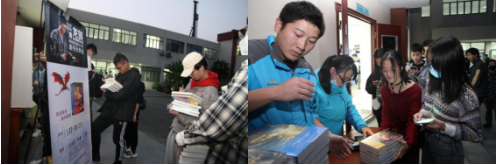 分享会开始前2个小时,13号楼报告厅就逐渐涌入了热情的读者粉丝,他们耐心地等待分享会的到来。据了解,有不少学生专门从将军路校区赶过来,天目湖不能到现场的学生,托同学购买书籍。这期间,摆在报告厅门口的新版《龙族》不断被买走,甚至有的学生一口气购买了十几本。