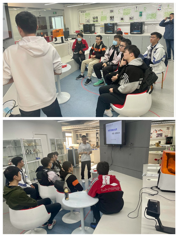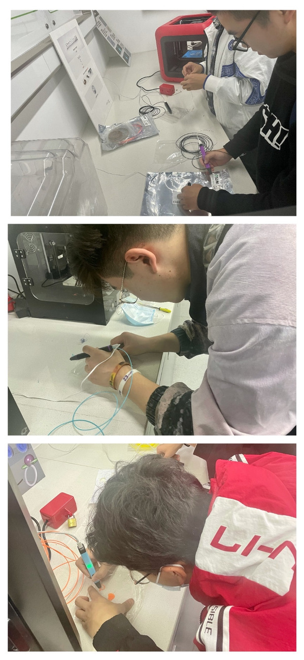 首先,杨钰隆向大家讲解了3D打印技术的进展与未来,展示了如何操作3D打印机,并针对在打印过程中要注意的问题进行了详细的讲解。每位同学都亲自动手实践,使用3D打印笔打印出了自己设计的图案。在实践过程中,同学们踊跃发问,针对表面处理等方面的问题,与研究生们进行探讨。