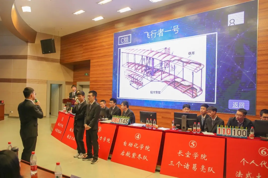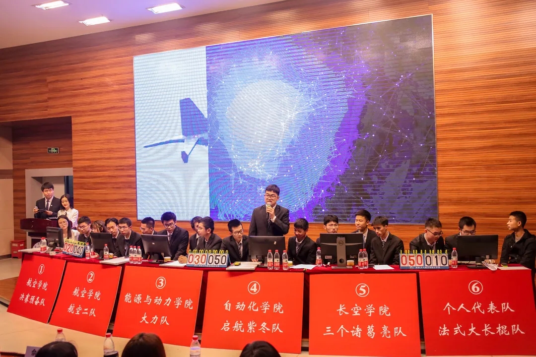 初赛环节,共有来自各学院各年级的三百余名选手报名,经过层层选拔,最终有六支分别来自航空学院、能源与动力学院、自动化学院和长空学院的学院代表队以及个人代表队站上了决赛的舞台,为观众们奉献了一场精彩的航空航天知识盛宴。