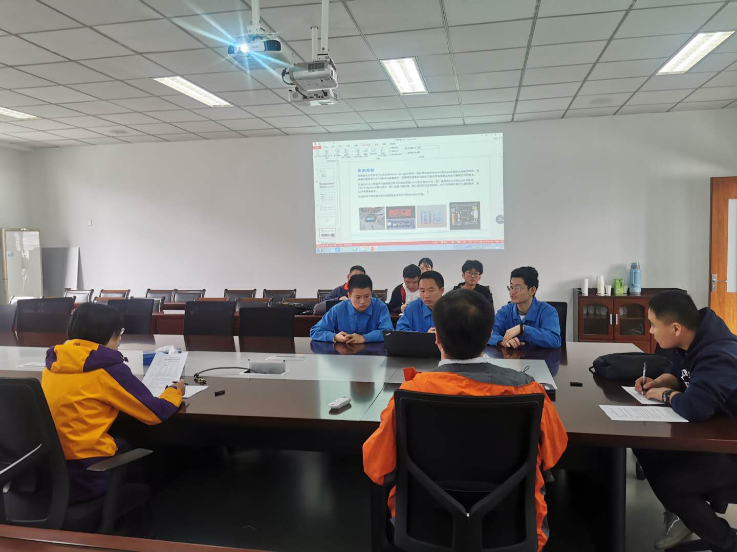 验收评审和中期答辩均分为项目组成员项目陈述和专家提问答辩两个环节。项目组成员在进行项目介绍后,开始成果的展示,最后由专家提问。因一组项目成员不在校内,评审专家特采用腾讯会议与学生连线,进行了线上验收。
