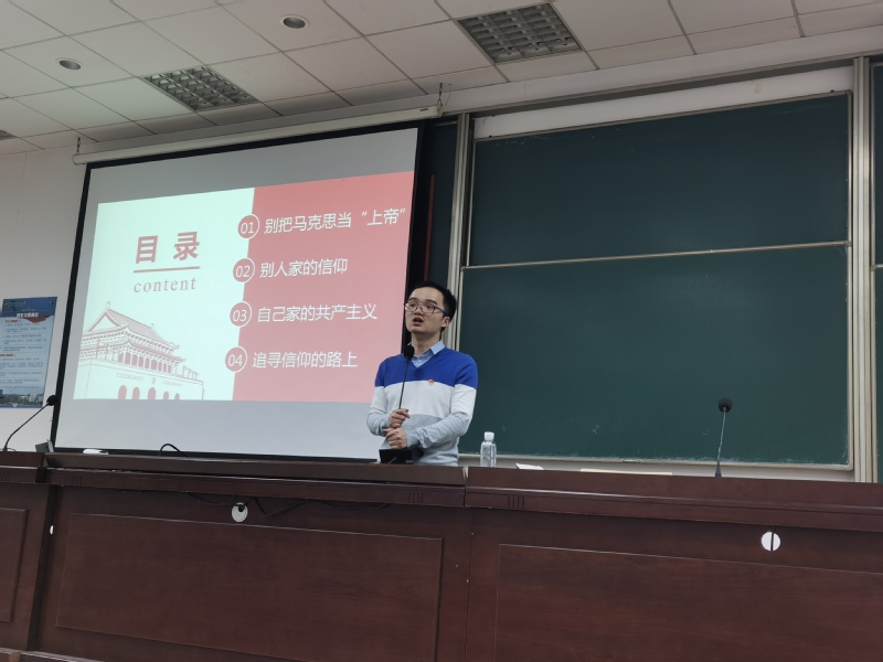 开课之初,沈晓海列举了几个从优秀党员变成违法乱纪的犯罪分子的事例引出本次公开课的主题——我为什么信仰共产主义。并从别把马克思当“上帝”,别人家的信仰,自己家的共产主义,追寻信仰的路上四个层面,结合实际故事,循序渐进的讲述了信仰共产主义的原因。