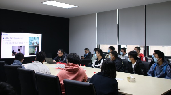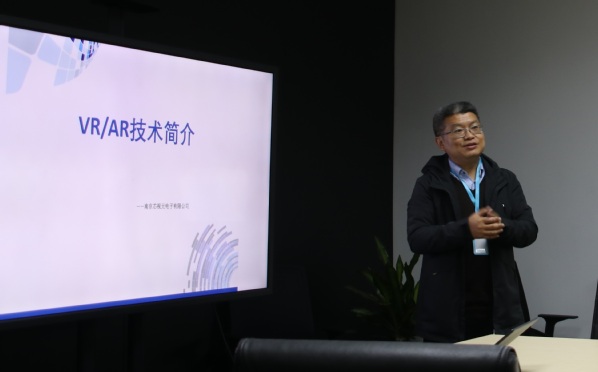 随后,研发部经理吴盼和市场总监张俊从虚拟现实、VR应用、增强现实、AR应用等多个方面展开,介绍了VR/AR的原理与应用前景,帮助同学们了解南京芯视元的发展现状、研究方向及研究成果;通过讲述VR/AR在医疗、教育等各方面的应用前景,为同学们展开了VR/AR未来广阔的蓝图。