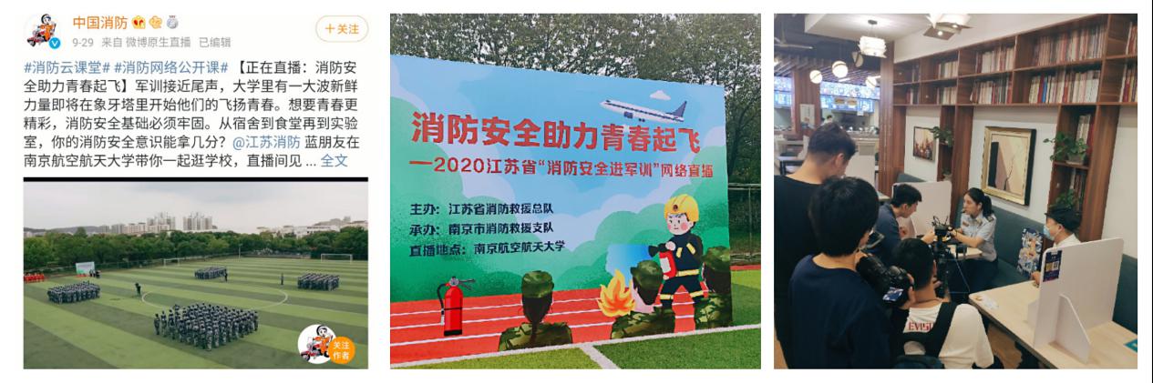 9月29日,江苏省消防救援总队、南京市消防救援支队与我校共同组织,联合新媒体直播平台,在南航校园开展了“消防安全助力青春起飞”的消防“云课堂”主题直播活动。此次直播结合校园常见火灾风险,在学生宿舍、实验室、食堂等场所实地讲解火灾危害和注意事项,穿插进行搜救犬表演、救援装备展示、实验室起火灭火、网友互动问答等环节,为广大高校学子讲授了一堂生动直观的消防安全教育课。活动开展期间,共有30余万网友通过直播平台参与其中。
