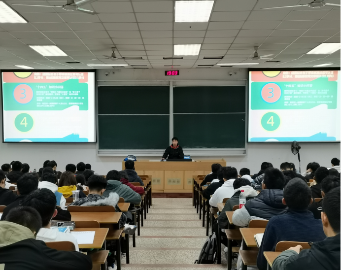 陈思宇同学负责第二个环节,她先是通过随机抽取学号现场问答的方式,活跃了现场的气氛,举手有奖的环节提高了同学们的参与积极性,不少同学对答如流,现场掌声雷动。随后,陈思宇同学阐释了十九届五中全会的公报要点:全面建成小康社会的十方面决定性成就、2035年要实现的九方面远景目标、“十四五”时期经济社会发展的6方面主要目标以及实现奋斗目标的12方面具体举措,并与同学们进行了讨论,大家纷纷对公报要点讲述了自己的理解,也加深了大家对公报要点的记忆。