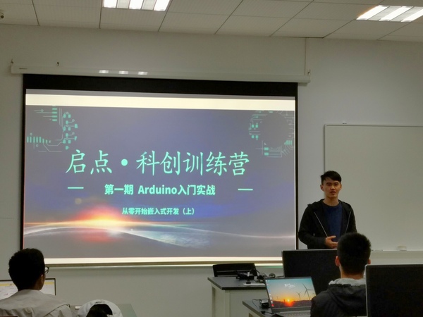 为培养航天学子的创新实践能力,营造热爱科创、勇于创造的学术氛围,11月23日晚在航天学院B406实验室,院学生科协和本科生创新实验室联合举办了第一期启点·科创训练营——Arduino入门实战(从零开始嵌入式开发)活动。航天学院辅导员徐伟证、本科生创新实验室负责人许传晓、科协秦恺等学生干部和本次训练营报名学员共同参与本次活动。