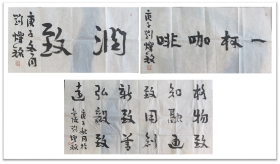 本场活动,刘灿铭以书法为切入点为同学们带来美学教育,更透过书法向长空学子传达了许多人生哲理,这无疑是改版升级后的“一杯咖啡的故事”系列活动在美育方面的又一次成功突破。讲座最后,我校副校长、长空学院院长施大宁教授特意来到现场,为刘灿铭老师颁发长空学院“润&致”文化导师聘书。刘灿铭老师回赠长空学院他精心创作的书法作品,施大宁代表长空学院与同学们一起见证了“润致”、“一杯咖啡”、“格物致知、融通致用、弘毅致善、创新致远”三幅书法作品,本场活动在墨香中落下帷幕。