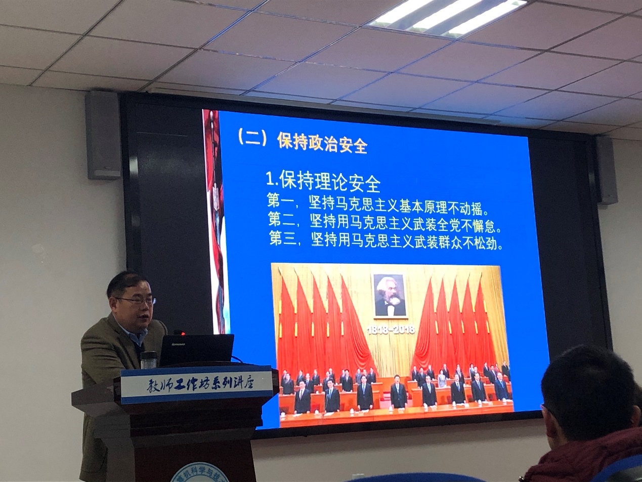 11月24号上午,由教师发展与教学评估中心、计算机科学与技术学院联合组织的教师教学发展活动在计算机学院113报告厅举行,南京大学信息管理学院党委书记姜迎春教授受邀作了题为“做好新时代高校意识形态工作”的讲座报告。本次活动由教师发展与教学评估中心主任周克印教授主持,宣传部副部长樊小杰、教师发展与评估中心副主任江爱华、计算机科学与技术学院/人工智能学院党委书记刘健荣、南航计算机科学与技术学院/人工智能学院副院长赵蕴龙以及学校教师代表参加了本次活动。