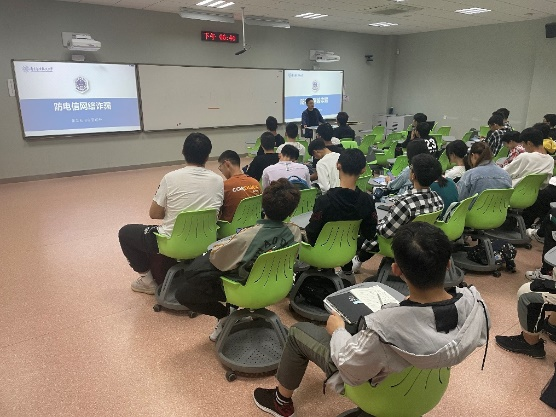 首先,周栋栋从我们为什么要上安全教育课讲起,结合小游戏让同学们认识到各式各样的诈骗手段防不甚防,每个同学都要提高自己的警惕之心,同时向大家分享了许多具体案例向大家介绍了常见的作案形式与诈骗手法,他还通过展现真实的诈骗电话录音、现场模拟诈骗过程等,帮助学生更加直观地认清诈骗行为的真面目。