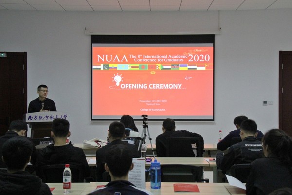 近期,航天学院分论坛在学院大楼A202室召开,分论坛由航天学院学生邹谨聪、仲启贤主持,航天学院院长助理康国华教授致欢迎辞,理学院尤文龙教授、航天学院闫钧华教授、吕金鹏副教授为评审专家,来自南京航空航天大学、南昌航空大学的三十名中外研究生分别就航空宇航科学与技术、光学工程、数学物理等领域的研究成果进行了学术汇报。