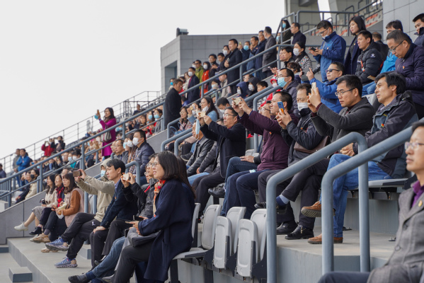在活动的第二阶段,全体参会成员一同参观了解了天目湖校区的建设情况,并集中观看了我校航模队的精彩表演。