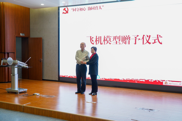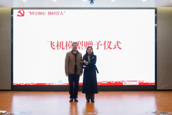 随后,张新明与高健分别代表天目湖校区与通用航空飞行学院向溧阳市教育局与江苏省溧阳中学赠送飞机模型。