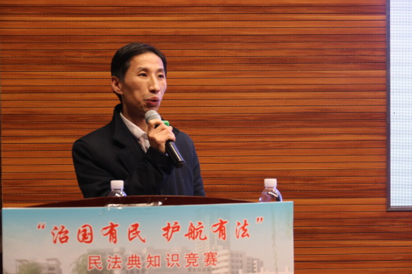 全场选手精彩对决,在法条与逻辑的碰撞中,为观众们带来一场民法知识盛宴。本次民法典知识竞赛以“治国有民,护航有法”为主题,旨在用知法于心,践法于行,辐射学生千余名,反响热烈,助力培育我校学子的“人文情怀”与“法律精神”。