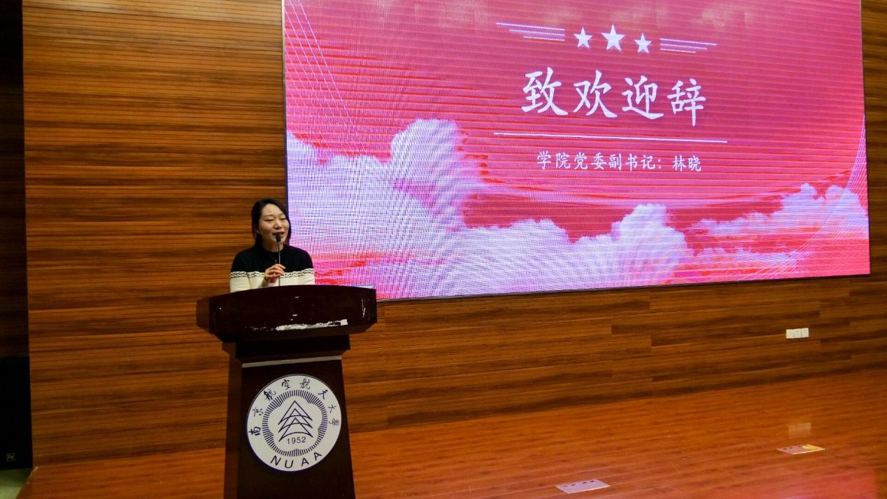开班仪式伴随着全体参会人员起立,奏唱团歌开始。随后林晓致辞,她表示学院打造的青马课程体系具有浓厚航天特色和人文情怀,为培养"政治坚定、德才兼备、素质全面、模范表率、堪当重任"的航天事业接班人奠定良好基础。希望全体学员在未来的学习和生活中做好三点表率:一是要树立创新思维、学好专业知识,将理论与实践相结合,成为航天事业有本领、有能力的航天事业接班人;二是要将航天精神与青马精神的学习相融合,坚定理想信念,成为社会主义事业合格建设者和可靠接班人;三是要坚持自我学习,不断增强自我教育、自我管理、自我服务的本领,携马克思主义理论实现自我发展。