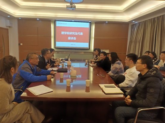 11月26日中午,理学院召开了研究生高质量发展学生代表座谈会,学院党委副书记周佼佼、副院长王正盛、各系分管研究生工作副主任、研究生教务员、辅导员和12名学生代表参加了本次座谈。会前,学院针对研究生全覆盖开展了教育教学管理服务情况摸底问卷调查,尤其对于研究生党建、导学关系、心理健康情况进行了重点关注。