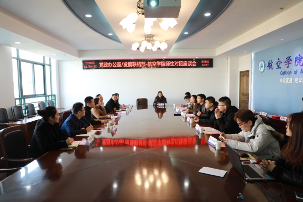 12月4日,党政办公室/发展联络部与航空学院师生对接座谈会在A18楼511会议室顺利召开。发展联络部部长、党政办公室副主任李君,党政办公室副主任刘红旗、党政办公室副主任张焱、发展联络部副部长张建辉,党政办公室综合科科长芮康康、发展联络部校友会办公室主任单晶、党政办公室机要室科员王莉丽,航空学院党委副书记佘明,本科生辅导员焦安康、吴静文、孙世杰、张迪,学生代表金鹏飞、努尔苏力坦·海来提等参加座谈会。会议由航空学院团委书记韩楚主持。