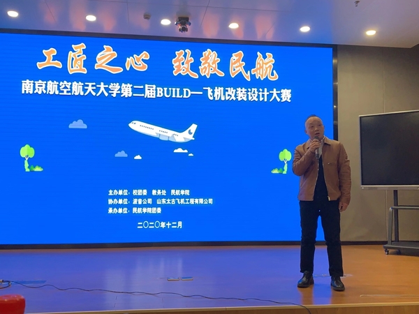 12月2日晚,我校第二届飞机改装设计大赛决赛暨颁奖典礼于天目湖校区巡天楼一楼报告厅举行。波音公司波音研究与技术部客舱技术研究员龙珑女士,中国民航局结构委任工程代表、山东太古高工赵伟岩先生,中国民航局系统和设备委任工程代表、山东太古高工宋青女士,山东太古飞机工程有限公司大修部经理吕文斌先生,民航学院党委副书记李和新、副院长吴薇薇,工程系主任丁萌、工程系教授李艳军、宫淑丽、曹愈远、团委书记肖杰以及学院辅导员和学生代表共同参与此次大赛。