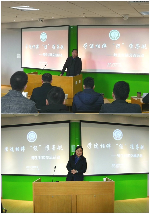 为进一步贯彻落实学校《领导干部深入基层联系学生工作方案》,促进师生之间的交流,12月3日,经济与管理学院在A0209教室组织了 “学途相伴‘经’准导航”师生对接交流活动。校科研院领导、校档案馆领导、经管学院党政领导、青年教师代表以及对接学生代表一同参加了此次活动。活动由经管学院党委副书记涂志宏主持。