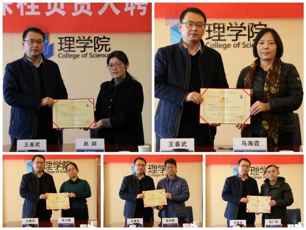 2020年12月4日中午,理学院课程负责人聘任仪式顺利召开,教务处刘长江副处长、理学院王春武院长、陈修文书记、各课程团队代表参加了本次仪式。李晋斌副院长主持受聘仪式,王春武简要介绍了课程负责人从谋划到落实的论证过程,现场分别与五位课程负责人签订并颁发了聘书,正式聘任赵颖老师为《高等数学》课程系列负责人、马海霞为《大学物理》课程系列负责人、朱小萌为《概率论与数理统计》课程系列负责人、张广斌为《大学物理实验》课程系列负责人。