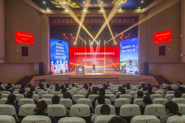 为深入贯彻落实全国和全省抗疫表彰大会精神,弘扬伟大抗疫精神,讲好江苏抗疫故事,12月8日下午,全省抗疫先进事迹巡回报告会在我校举行。省文明办副主任公永刚、省教育厅二级巡视员李金泉、校党委副书记、纪委书记杭育新,党委常委、宣传部/教师工作部部长王晖、省委宣传部宣教处副处长张广宇参加报告会。来自我省抗疫一线的8名抗疫先进典型,为现场400余名师生党员上了一堂生动的思想政治教育课。