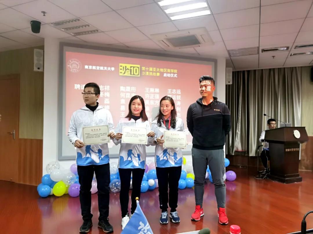 12月6日,第十届亚太地区商学院沙漠挑战赛南京航空航天大学经济与管理学院在职研究生“智行沙十队”启动仪式在MBA中心四楼405教室隆重举行。