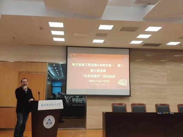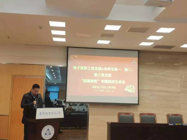 2020年12月11日,电子信息工程学院电子系教工党支部与本科生第一、第二、第三党支部在学院515报告厅进行支部共建,联合召开“清廉南航”专题组织生活会和“互学互助月”党日活动,学院副院长刘伟强同志以学院纪检委员身份出席本次会议,党委副书记雷蕾同志以支部普通党员身份参加会议。