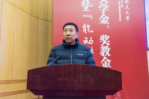 甘晓华代表“航心”基金理事会讲话。甘晓华回顾了“航心”基金设立初衷,阐述了“航心”奖学金、奖教金设立意义。他指出,发动机是飞机的心脏,“航心”是航空报国之心,希望学子们能够努力学习、攀登高峰,助力航空发动机赶超世界先进水平;希望老师们搞好科研,教好学生,为航空动力事业发展注入南航力量。甘晓华代表理事会号召广大校友、师生捐赠支持“航心”基金,汇聚力量。