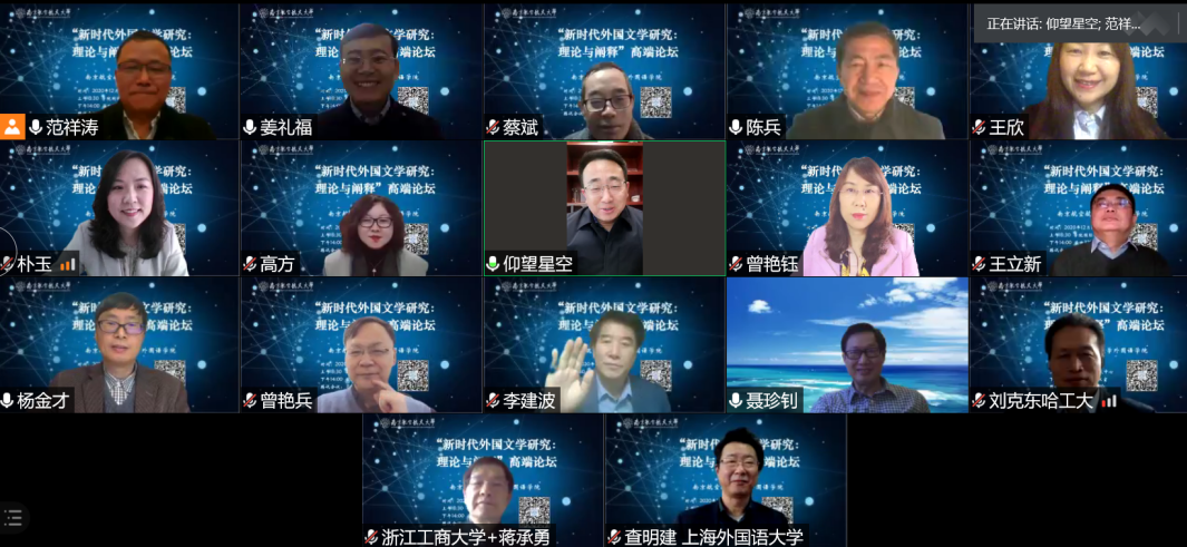 浙江大学聂珍钊教授、中国人民大学曾艳兵教授、南京大学陈兵教授,以及河海大学蔡斌教授主持了论坛。参会师生围绕外国文学研究理论阐释和理论批评进行了充分的交流。