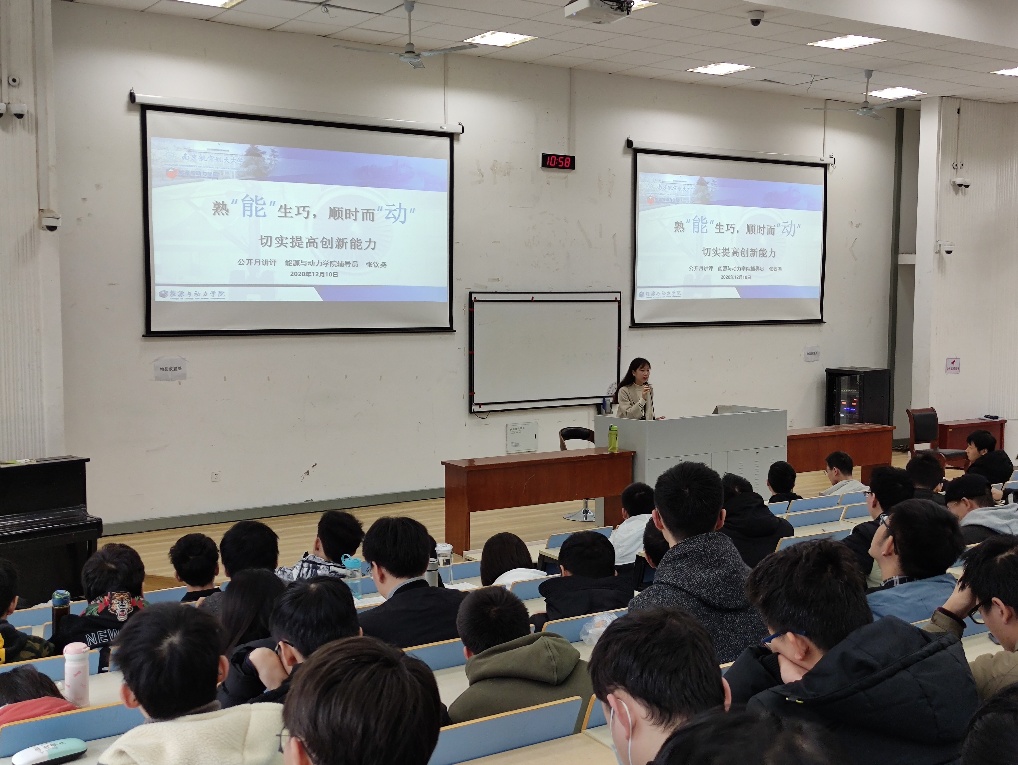 12月11日,能源与动力学院面向本科生,开展主题为“熟‘能’生巧,顺时而‘动’——切实提高创新实践能力”的公开月讲评。月讲评由学院本科生辅导员张钦尧主讲,近400名学生参加。