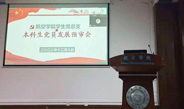 2020年12月9日、10日,航空学院于A18-529会议室分别举行了2020年下半年本科生、研究生党员发展答辩及党员发展学生党总支预审会。答辩评审由学生党总支委员、学生支部正式党员代表构成,各年级辅导员参与了答辩预审。