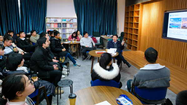 12月16日,栖霞区委常委、统战部部长郭昌标到访长空学院,做客“一杯咖啡的故事”,以“三年援藏行,一生高原情”为主题,为长空学院学生们带来了一曲家国情怀与民族情怀交织的藏地乐章。长空学院常务副院长蒋彦龙、副院长张林、孙涵陪同交流。