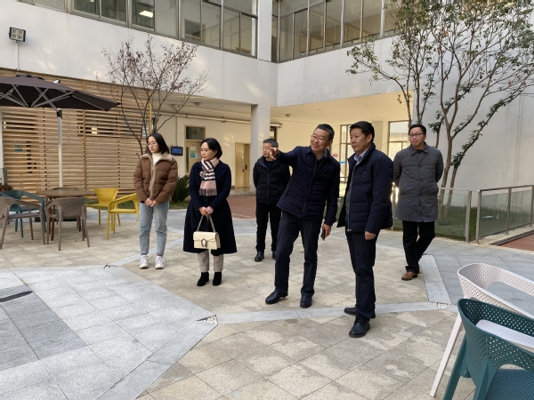 蒋彦龙代表长空学院对郭昌标的到来表示热烈欢迎,并陪同参观了长空学院“准书院制”智慧教育空间,介绍了学院以“润&致”文化为核心的人才培养举措。郭昌标实地参观了学院“润&致”文化广场、文化长廊、智慧教室等,高度评价了长空学院的育人环境和人才培养探索实践。
