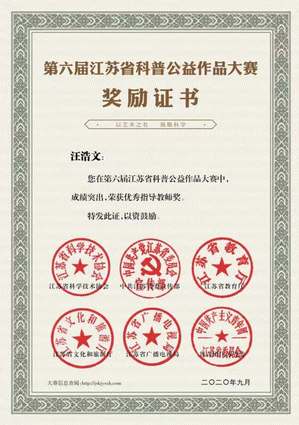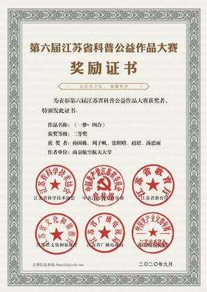 近日,由省科协、省委宣传部、省教育厅、省文化和旅游厅、省广播电视局、团省委主办,省科学传播中心和省科教影视协会承办的第六届江苏省科普公益作品大赛评审工作已经圆满结束。在本次比赛中,艺术学院学子孙国栋、周子帆、张照晗、赵珺、汤思雨再创佳绩,荣获省级二等奖,指导教师汪浩文荣获优秀指导教师奖,南京航空航天大学艺术学院荣获优秀组织单位奖。