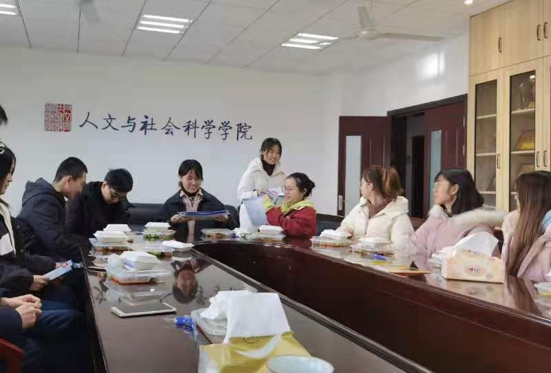 2021年全国研究生入学考试在即,人文与社会科学学院39名考研学子即将奔赴考场。为鼓舞士气,增强信心,12月16日,院党委书记刘虎、副书记尹春苹、副院长施向峰、法律系主任王炳、公共管理系主任鲁兴虎和毕业班辅导员聂小芳与考研学子们相聚在312会议室,一起共进温馨的午餐。