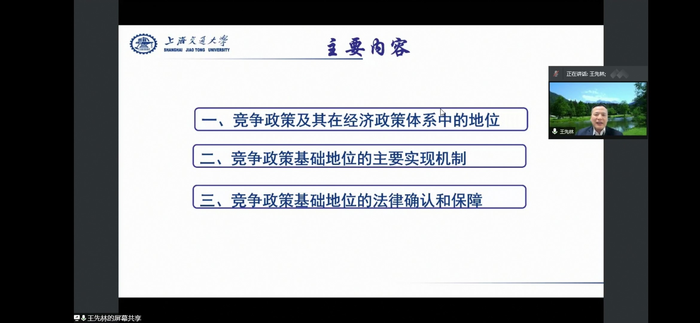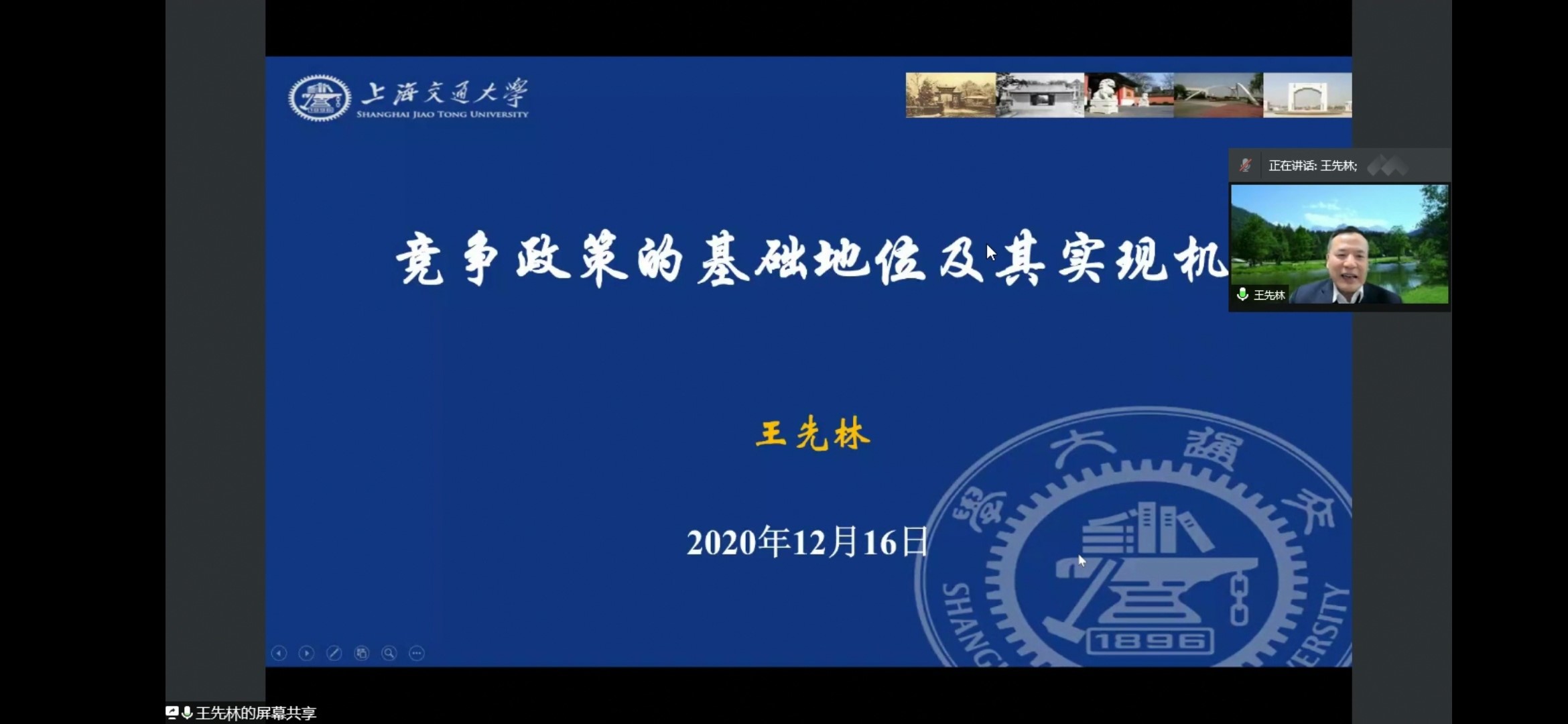2020年12月16日晚,南京航空航天大学第24期“人文大讲堂”在线如期举行,上海交通大学特聘教授、博士生导师、法学院经济法学科带头人王先林受邀开讲。讲座由人文与社会科学学院法学学科负责人王炳主持,中国政法大学民商经济法学院副教授张春丽、南航人文与社会科学学院副教授窦正斌参加本次讲座,学院150多名本科生、研究生参与了此次活动。