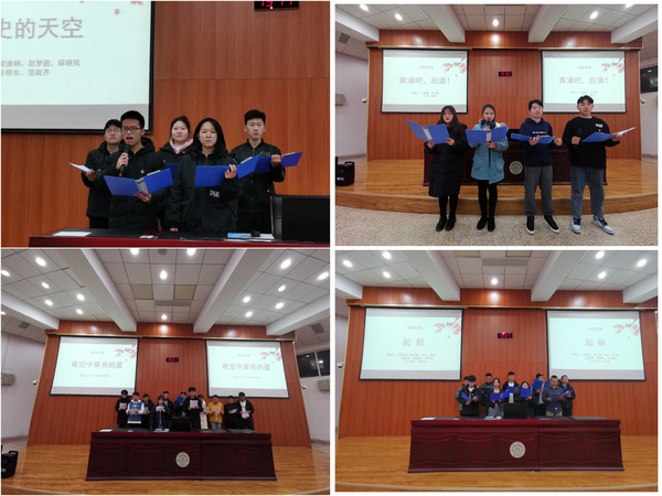随后,2019级和2020级的青年团员们联合表演。赵梦圆、范政齐、安桥东等朗诵了《奔涌吧,后浪》、《起航》等现代红色诗歌。