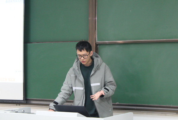 在主持人正式介绍完各位到场老师、评分细则和答辩规则之后,每支团队的答辩人依次上台,就自己项目组目前取得的结果进行汇报,之后由各位评委老师进行点评,线上评委老师也就最开始的课题设置进行一定的说明和解释。每支团队都在五分钟的答辩过程中,全方位地展示出自己团队所参与的实践过程和所做出来的实践成果。