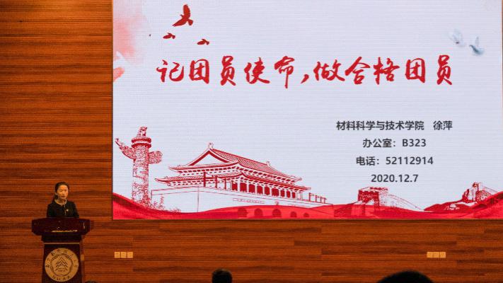 什么是团?如何做好共青团员?在这样的问题下,她为我们详细介绍了共青团的定义与历史,从思想引领、组织建设、科技创新、社会实践、志愿服务和校园文化六个方面介绍了团的工作所涉及的领域,揭秘了分工明确的各级团组织的组成结构和运行机制。她还重点指出,习近平总书记是我们中国的实践先锋,我们应学习习总书记踏实肯干、敢于创新的实践精神,努力实践社会,服务社会,做一名合格的共青团员。最后,她带领大家重温了入团誓词,号召大家不忘初心,砥砺前行。