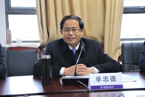 单忠德指出,马克思主义学院建设直接关系到为谁培养人、培养什么人,怎样培养人这个根本问题。近年来,学校高度重视马克思主义学院的建设与发展,学院教学有特色,学科有影响,在各方面均取得了突出成绩,为学校思想政治理论课的有序组织和全校教学科研工作作出了重要贡献。他强调,面向“十四五”,马克思主义学院建设一是要真学真信真用。要始终坚持以马克思主义为指导,真正将习近平新时代中国特色社会主义思想学深悟透做实,内化于心、外化于行,善于从哲学的高度推动全校提升改革创新能力、破解难题能力,忠诚担当能力。二是要增强发展厚重感。坚持把学院建设与“双一流”建设、国家战略需求相结合,从党政领导班子成员做起,做真学问、练真本领,潜心研究、潜心教学,发挥示范榜样、标杆表率作用,力争产出更大标志性成果、培育更多标志性人才。三是要协力协同赋能。要以更加开放的姿态上好思想政治理论课,广泛汇聚学校各部门、各学院的思政工作力量,让更多党政领导干部、辅导员走上思政课堂,打造专兼结合的高素质思政理论课教师队伍,形成富有特色的思政工作融合体,共同培养好德智体美劳全面发展的社会主义建设者和接班人。
