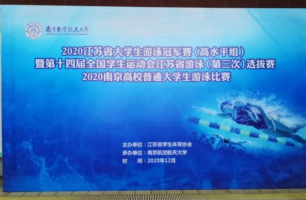 12月26日,由江苏省学生体育协会主办、我校承办的2020江苏省大学生游泳冠军赛(高水平组)暨第十四届全国学生运动会江苏省游泳(第三次)选拔赛和2020南京高校普通大学生游泳比赛于将军路校区游泳馆拉开帷幕。本次赛事共有东南大学、中国矿业大学、苏州大学、南京体育学院4所高校高水平代表队,以及南京航空航天大学、南京大学、河海大学、南京工业大学、南京中医药大学11所高校普通生代表队200余名师生参加了本次比赛。