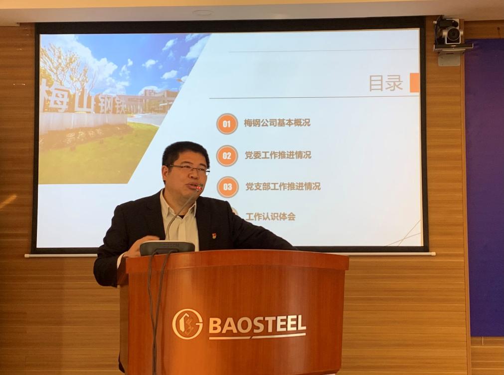 随后,梅钢人力资源部(组织部)副部长、统战部部长苏潜介绍了国企党建的历史、发展与经验。他指出,梅山钢铁公司坚持规范、简便、有效的工作原则,实践“凝聚、发动、发现、弘扬”的工作方法,并在党建责任落实清单化、推行“三张清单改革”、“三员”干部队伍建设以及党内主题实践等方面积累了丰富的创新实践经验。