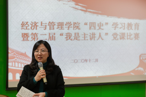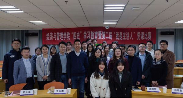 为深入学习贯彻党的十九届五中全会精神,落实将“四史”学习教育融入党支部“三会一课”的明确要求,并进一步加强学生党支部建设。12月25日,经济与管理学院在院楼A0209会议室开展“四史”学习教育暨第二届“我是主讲人”支部党课比赛,院党委书记焦宏图、院党委副书记涂志宏、青年教师代表罗正军、赵亚普、王长波,全体辅导员以及学生党员代表参加了此次活动,活动由辅导员康冲主持。