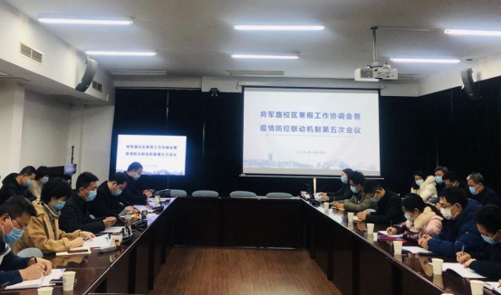 1月15日,将军路校区管委会组织召开寒假工作协调会暨校区疫情防控联动机制第五次会议,管委会成员单位负责同志、各驻区单位办公室主任参加会议。会议由校区管委会主任刘兼唐主持。